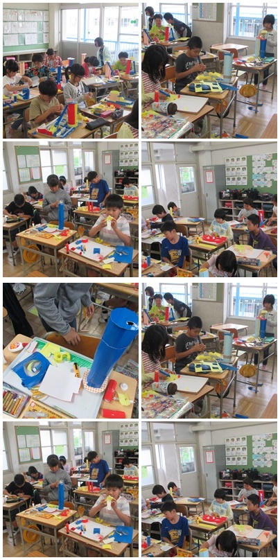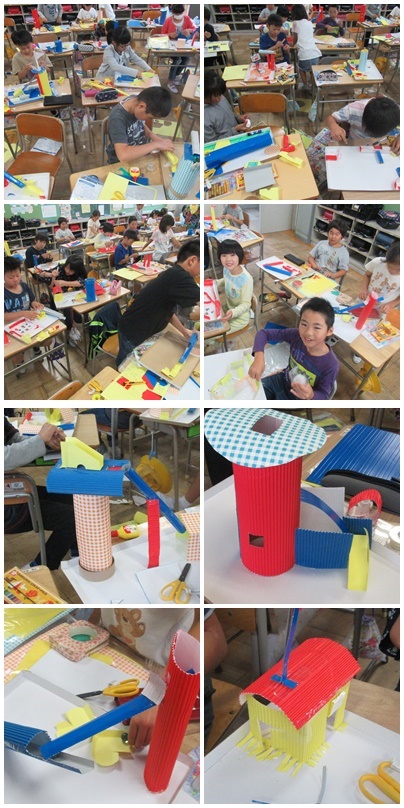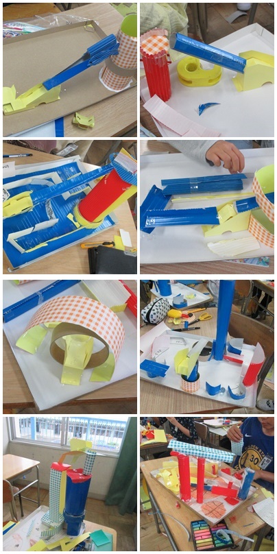 4年生 図工「コロコロガーレ」、自分なりにいろんな工夫をして、ビー玉を転がすおもしろいコースを製作しています。来週完成したら、みんなで遊びたいです。