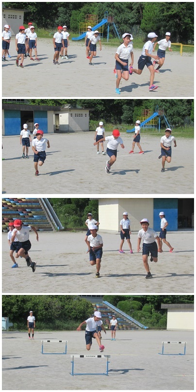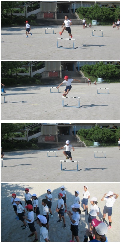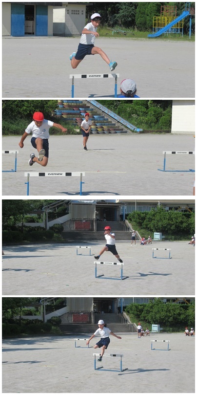 ハードルは、きれいに跳ぶ(できるだけ低く跳ぶ)のがとても難しい競技です。暑い中、みんな頑張りました。