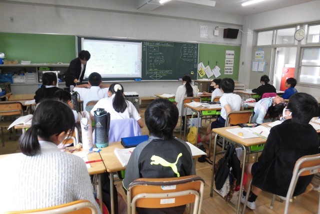 5年1組ひし形の面積、5年2組台形の面積について学んでいました。