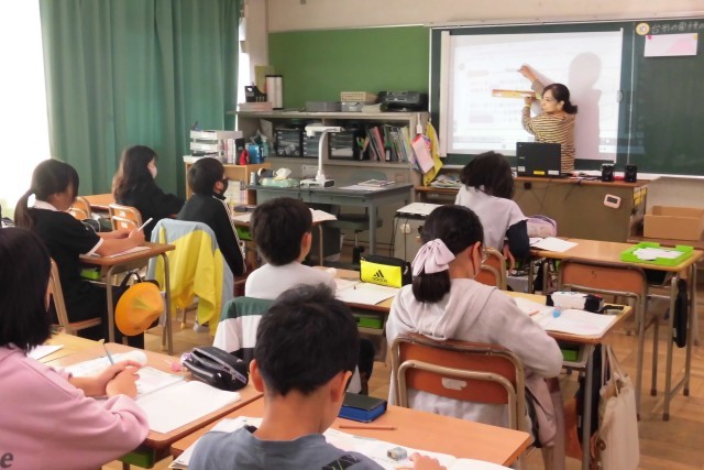 6年どこの国から来たのか、どこの国で作られたを英語で話していました。