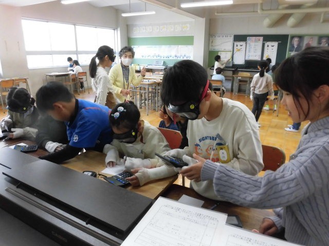 シルバー体験をしました。白内障の方がどのように見えるかゴーグルをつけたり、手にサポーターをつけて動かしづらくしたりして、お店屋さんごっこや、豆づかみなどをしました。お年寄りの動きや気持ちがよく分かったようです。今まで以上に優しく接することができるといいですね。
