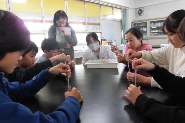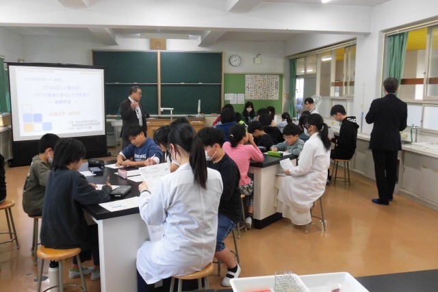 名城大学の教授・学生さんをお招きして、6年生に実験をさせてもらいながら授業をしていただきました。
