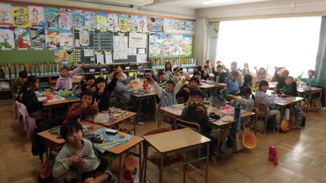 1・2年生の給食の時間の様子です。今日は校外学習の予備日のため、給食ではなくお弁当でした。
