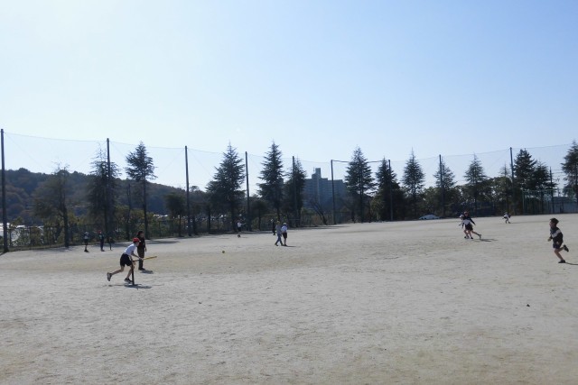 5年2組 運動場でTボール。しっかりボールにミートさせていました。