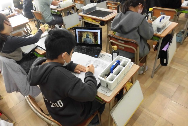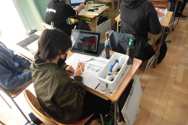 6年生 修学旅行の思い出を水墨画で表現していました。