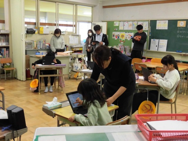 本校では、職員研修として、一人1回公開授業を行い、先生方で授業を見て学び合いを行っています。今日は、4組の授業を参観しました。めあてを守って楽しくゲームをすることができました。上手に3ヒントクイズを作って、問題のだしあっこができました。