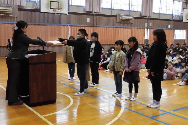 始業式では、校長先生より「『午年』は、うま(午)くいく年、物事が最も勢いよく発展し、新しいことに挑戦したり、大きく飛び跳ねたりするのに最高の年。3学期の目標は、 つ・な・げ・よう :次の学年へ、仲間を大切に、(心も)元気に …。」というお話がありました。代表児童からの発表も聞きました。