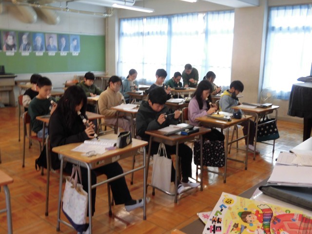 5年2組音楽 リコーダーで「ルパン三世のテーマ」を練習していました。