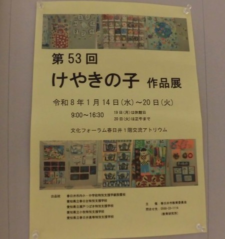 「第53回けやきの子作品展」が開催されています。けやきの子作品展は、市内小中学校の特別支援学級の児童生徒や、市内にある特別支援学校の児童生徒の図工・美術や書などの作品を一堂に集めた、毎年この時期に行われている作品展です。
