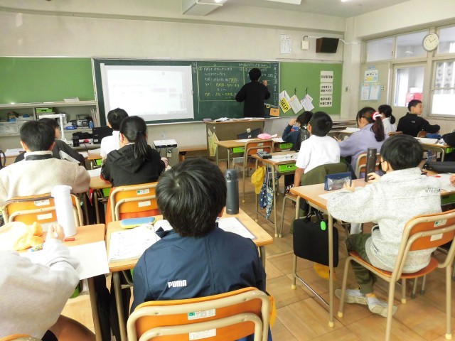 4・5年生は算数。分数や円周について学習していました。6年生は英語。とっても難しいリスニングの聞き取りをしていました。