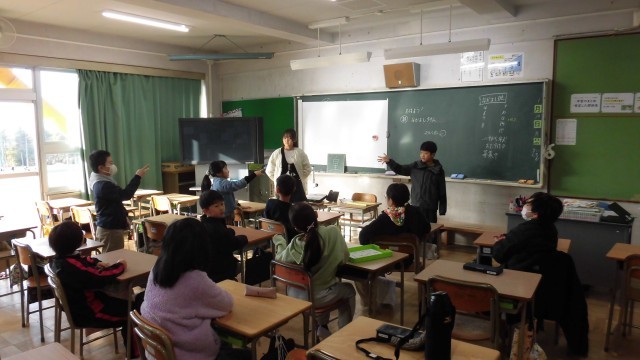 各班の6年生が遊びを企画し、運動場や教室に分かれて、全学年が楽しく活動しました。