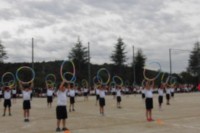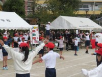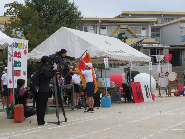 本日の運動会の様子をお伝えします。開会式で元気よく、スローガン「みんな輝け!全力...