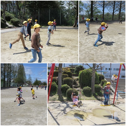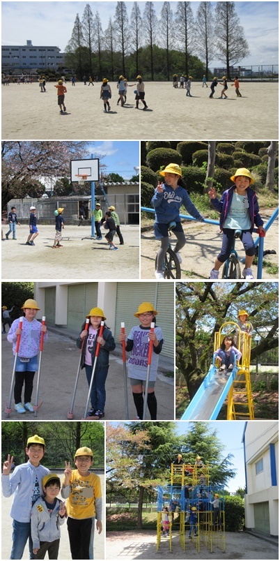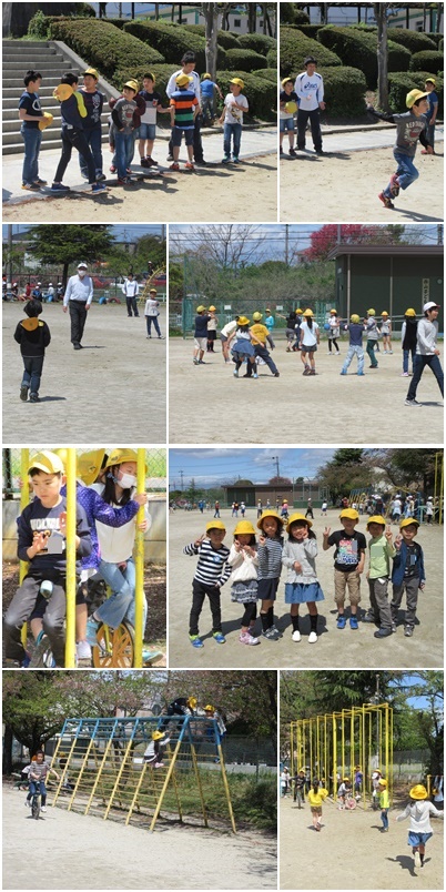 今日も最高のお天気です。休み時間の運動場は大賑わい。みんな元気に遊んでいます。