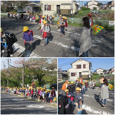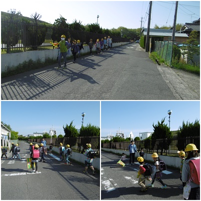 登校の様子をみてみると、みんな、しっかり並んで登校できています。あいさつも元気にできました。さすが西山っ子です。