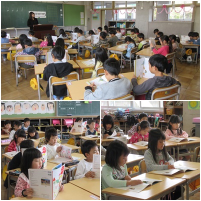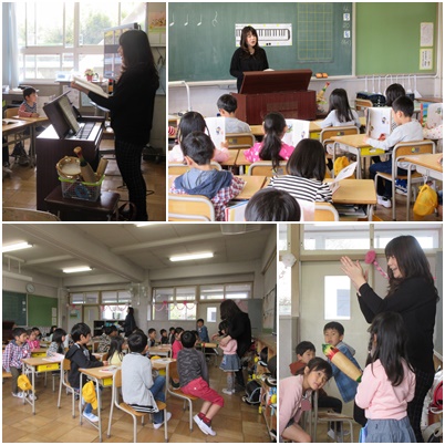 1年生は、音楽の授業を、担任の先生ではなく音楽の先生に教えてもらいます。子ども達はとても楽しそうに歌ったり、楽器を楽しんだりしていました。