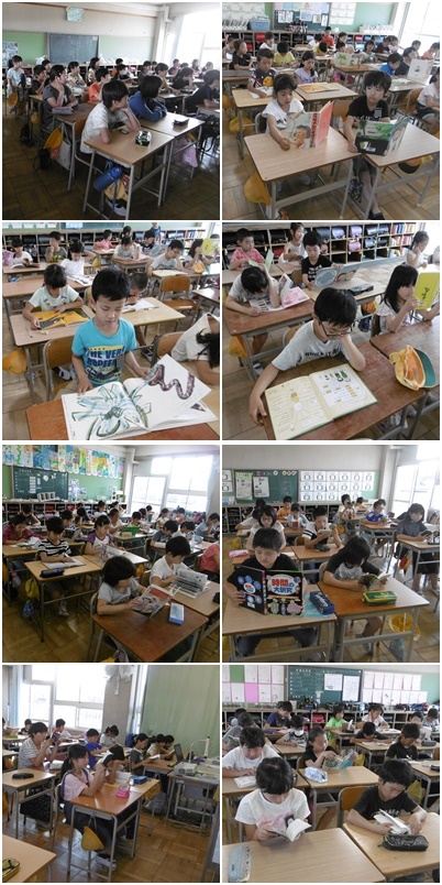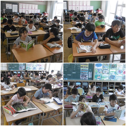 今朝は、読み聞かせボランティアの方3名と、校長先生の「読み聞かせ」がありました。子どもたちは本の世界に入りこむように、本の「読み聞かせ」に聞き入っていました。それ以外のクラスも、静かに読書をしていました。どのクラスも、これから「読み聞かせ」に来てもらえますので、楽しみにしていてくださいね。