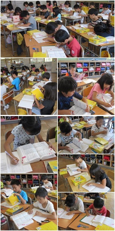 上の写真は、1組です。国語辞典で新出語句の意味調べをしています。