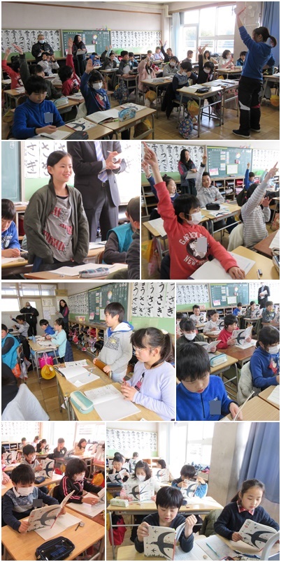 上の写真は1組で、社会の勉強です。下の写真は2組で、国語の勉強です。どちらのクラスも、集中して頑張っていました。