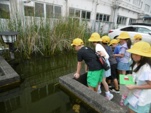 9月から校庭に探検に行き、西山小学校にいる虫さがしをしました。