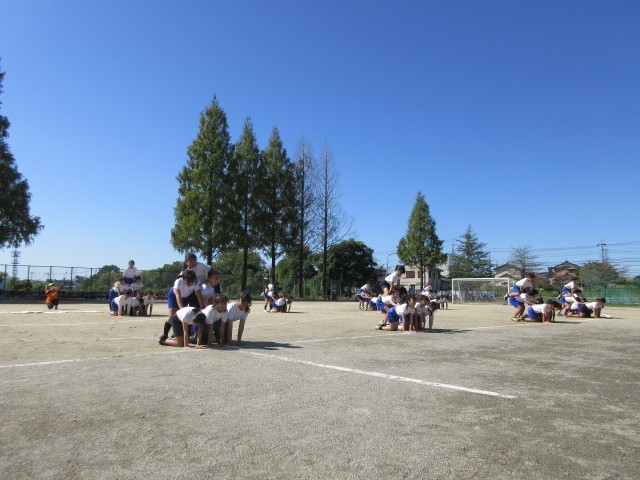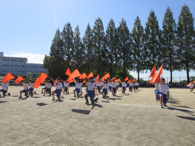 パシュートリレーでは、最後まで勝敗の行方がわからないドキドキする展開に、応援が盛り上がりました。表現運動では、フラッグ&組立体操では、全員の気持ちが一つになり、数々の技を決め、大きな歓声が上がりました。高学年としての姿をしっかりと見せてくれました。