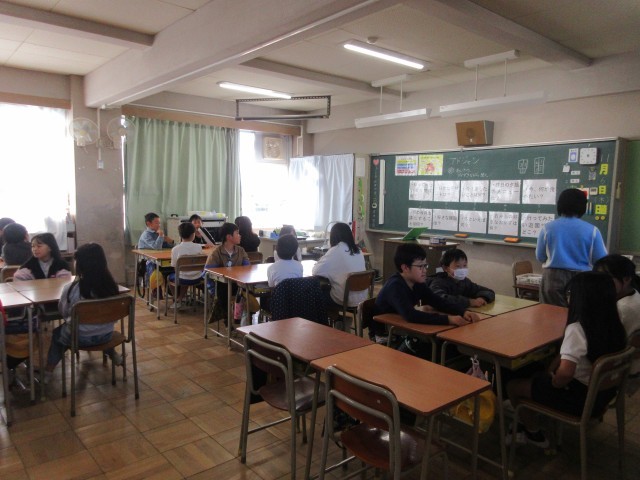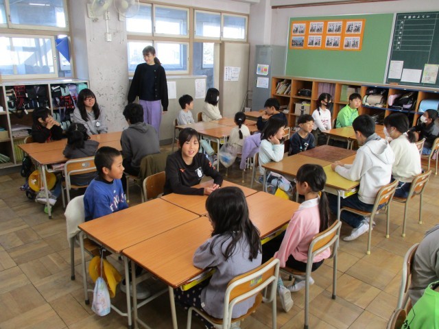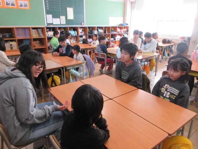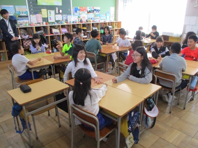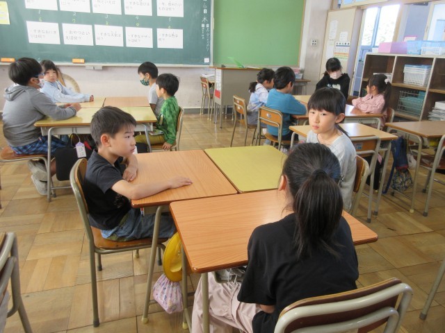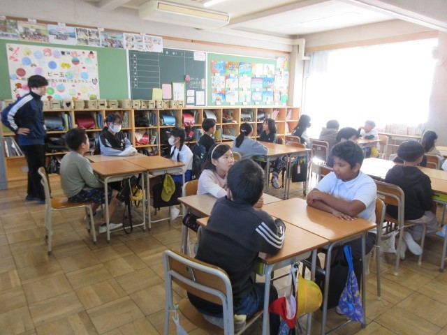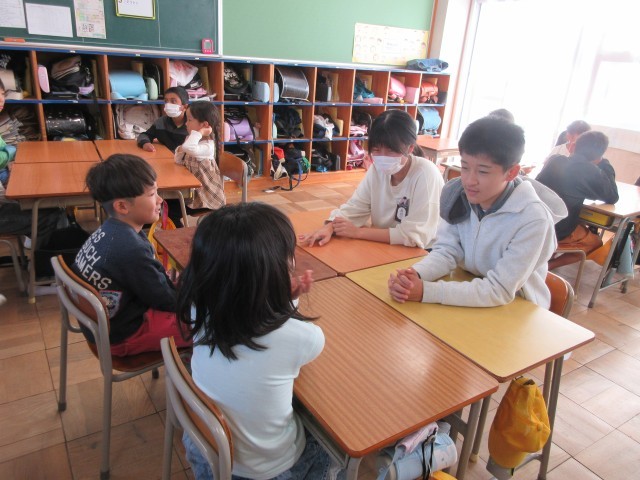 今日のにこにこタイムは、児童のシャッフルを行いました。2年生と6年生、3年生と5年生の組み合わせで活動し、4年生は1年生をシャッフルして行いました。高学年の子たちがしっかりとリードして、「アドジャン」を楽しく進めてくれました。