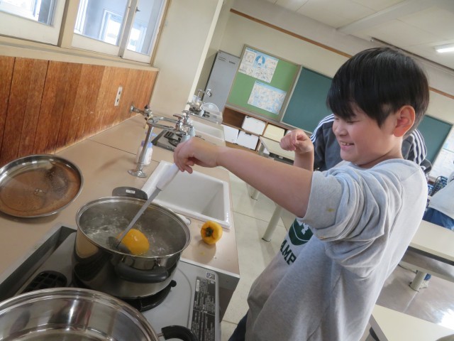 そのあと、沸騰したお湯に10秒くぐらせて消毒します。