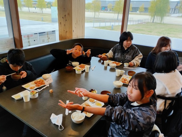 予定通り到着しました。まずはお待ちかねの昼食タイムです。午後の活動に向けてしっかりとエネルギー補給しました。みんな元気です。