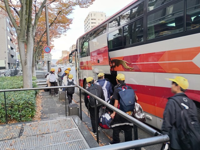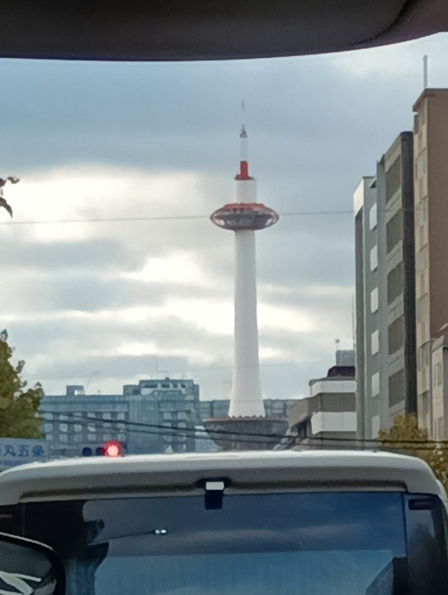 予定通り、ホテルを出発しました。清水寺に向かいます。車窓から京都タワーや五条大橋を見ることができました。