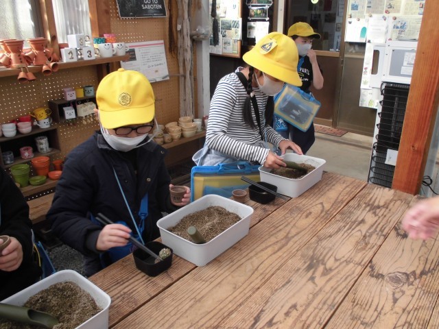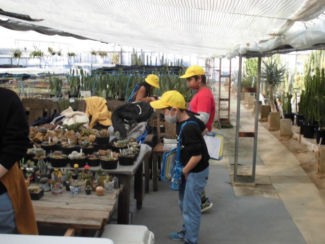 21日(金)は、後藤サボテンに行きました。後藤サボテンでは、サボテンの種類や歴史などについて詳しく説明をしていただきました。しおりのページがなくなるほど、一生懸命話を聞いてメモをしていました。その後はサボテンの寄せ植え体験をしたり、サボテン園の中を班ごとに見学しました。今度、自分の寄せ植えをしたサボテンが戻ってきます。お家で大切に育ててくださいね。