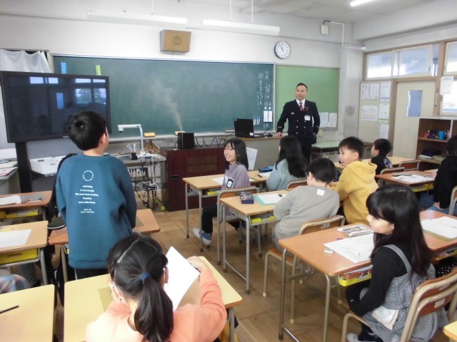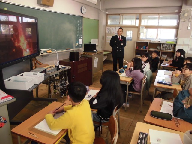26日(水)は、消防署の方に来ていただき、出前授業をしていただきました。消防士さんの1日やお仕事の内容について教えていただいたり、大変さなどを学びました。また、いざ火事がおきたらどのように行動をすると良いのか、家庭でできる火災の予防など、詳しく教えていただき、真剣に話を聞き、メモをとりました。次の日に、「お休みした友達にどんな話があったのか伝えよう!」と、たくさん聞かせてくれました。ぜひ、お家でもお話を聞いてあげてください。