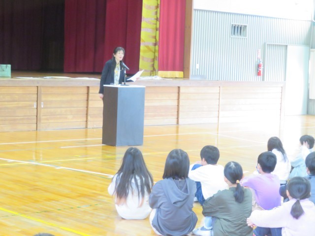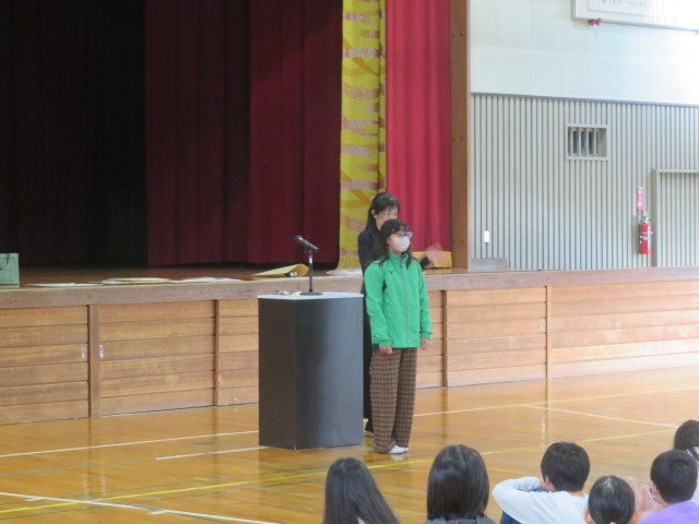 1日(月)は、朝会を体育館で行いました。はじめに各表彰や市町村駅伝の春日井市代表選手の紹介を行いました。その後、校長先生から人権週間についてのお話がありました。すべての人が生まれながらにもっている権利を大切にするために、優しさや思いやりをもって友達に接していこうとお話がありました。2学期も残り3週間です。体調管理に気をつけて過ごしましょう。