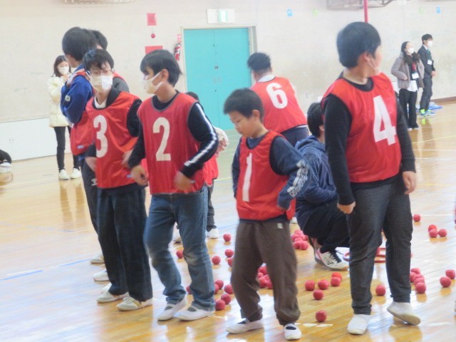 ブロック交流会の玉入れでは、赤・白・青・黄のチームに分かれて行いました。