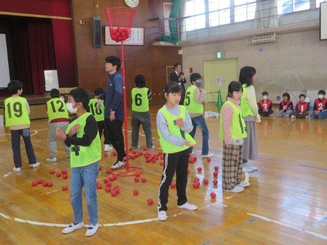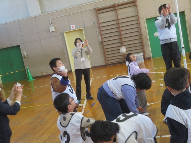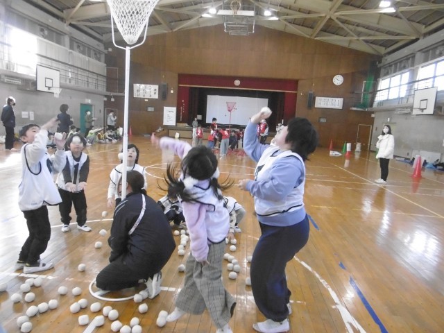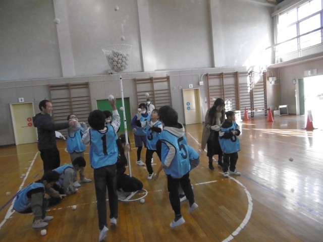 みんなが練習の成果を出して、かごをめがけてしっかり投げることができました。