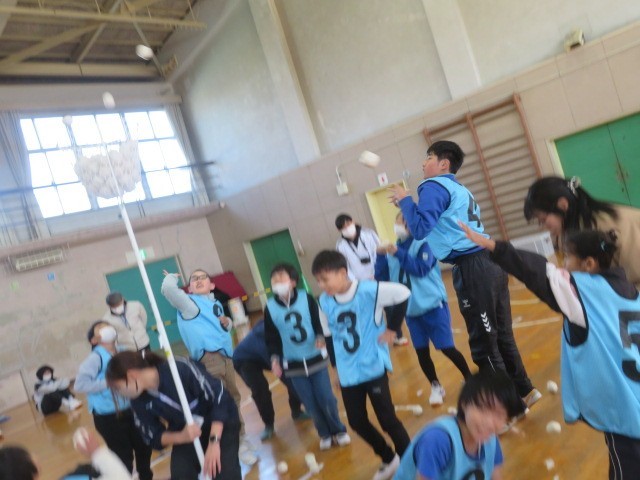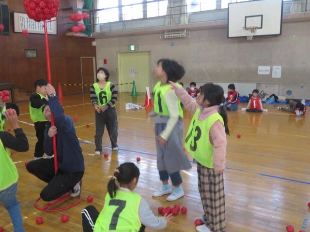 チェッコリダンスを元気に踊り、曲の合間に玉入れをしました。