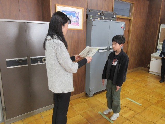 本日は、今年度最後の朝会を行いました。はじめに、読書感想画コンクールの表彰を行いました。校長先生からは、風邪予防として手洗い・うがいをしっかり行うことの大切さについてお話がありました。また、新しく赴任された用務員さんの紹介もありました。続いて図書委員会から、「さざんか読書週間」についてのお知らせがありました。今年度の登校日も残り30日あまりとなりました。一日一日を大切に過ごし、次の学年へとつなげていけるよう、引き続き頑張っていきましょう。