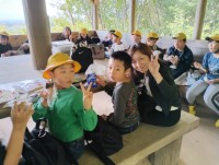 全班、山頂に無事に到着しました。景色を眺めながら昼食タイムです。