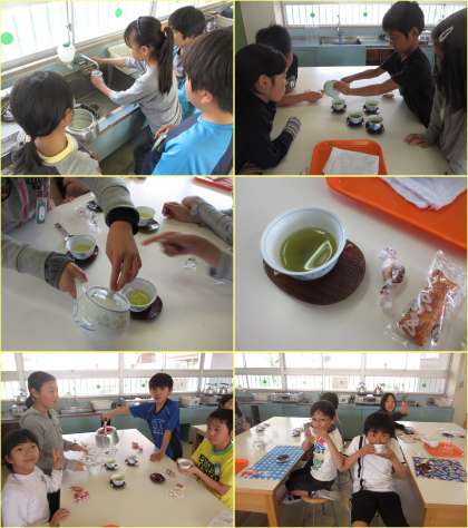 家庭科「手順を考えて安全に調理しよう」の学習で、ガスコンロの安全な使い方とお茶の入れ方を学習しました。みんなでお茶を楽しむことができました。自分たちで入れたお茶はとってもおいしかったです。家庭科の学習を生かして、家庭でも家族のためにお茶を入れてみよう。