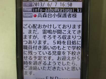 6月7日(金)、4・5・6年生の下校時間前に雷雨となり、緊急下校を行いました。お迎えありがとうございました。