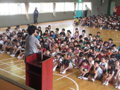 6月10日(月)の朝会では、交通安全についてのお話と、学習では基本を大切にしていこうというお話がありました。