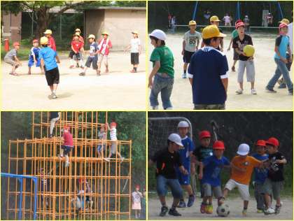 日差しの強い季節になってきました。子どもたちは、熱中症対策で、ちゃんと帽子をかぶって元気よく遊んでいます。
