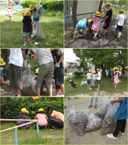 6月13日(木)の校区クリーン作戦では、分団ごとに、通学路や近くの公園の清掃活動をしました。みんなで協力して、自分たちの住んでいる地域をきれいにすることができました。