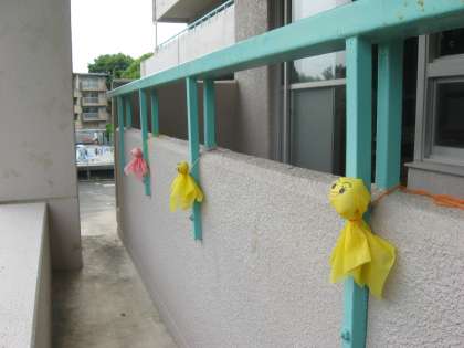 5・6組のプール第一回目が明日のため、なんとか入れるようにと5・6組の子達でてるてるぼうずを作りました。