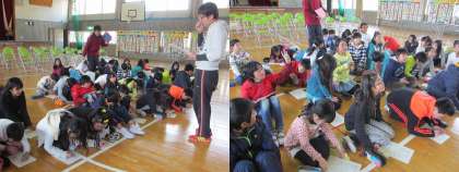 昨日の分団会で決まった新入生のお迎え係の子どもたちが、20分放課に体育館に集まりました。
