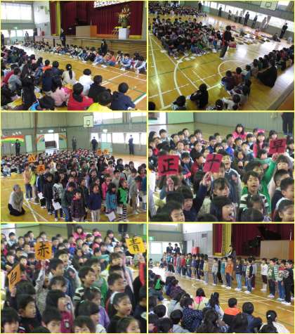 始業式の後、児童会の主催で、昨日、高森台小学校に入学した1年生のみなさんを迎える式を行いました。2年生から1年生のみなさんに、歌のプレゼントがありました。