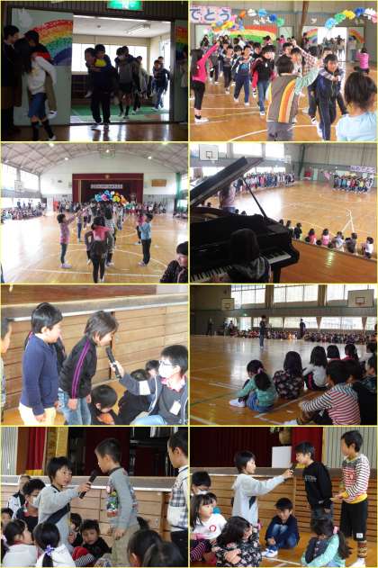 4月9日(木)、児童会の運営で1年生を迎える会を行いました。6年生が1年生をおんぶして入場し、1年生の自己紹介とゲーム「じゃんけん列車」を行いました。1年生といっしょにとっても楽しい時間を過ごすことができました。