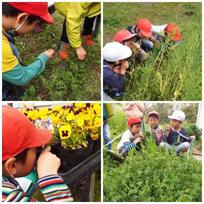 理科「春のしぜんにとび出そう」の学習で植物や生き物の観察をしました。どの子も上手に観察することができました。