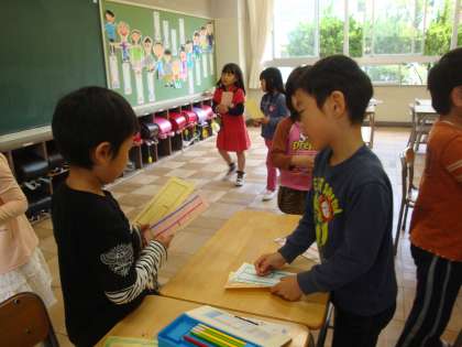自分の名前を書いて,話したことのないクラスの仲間に自己紹介をしました。これからたくさんお話できるといいね!