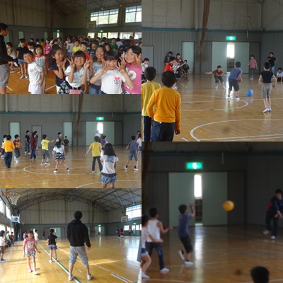 先生たちも一緒に遊び,みんな汗だくで,笑顔で楽しみました。