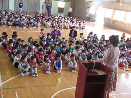 4月27日(月)の朝会では、校長先生から、生物の進化に関連づけながら、高森っ子の誓いの1番目の「すすんでやる気」についてお話ししていただきました。進んでいろんな事に挑戦し、自分を進化させていこう。