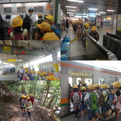 今日は遠足で定光寺公園へ行きました。高蔵寺駅まで歩き,自分で切符を買って電車に乗りました。初めての無人駅を見て,子どもたちは興味津々でした。公園では,遠足に来ていた他の学校の子どもたちとも仲良くなり,一緒に天下やドッジビーをして楽しみました。たくさん歩き,疲れもありましたが,みんな楽しく過ごしていました。